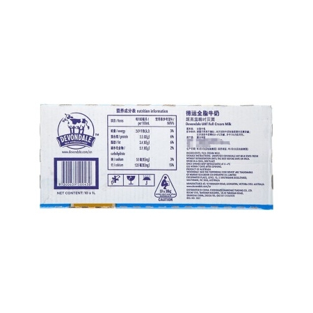 澳大利亚 进口牛奶 德运(Devondale) 全脂牛奶 1L*10 整箱装