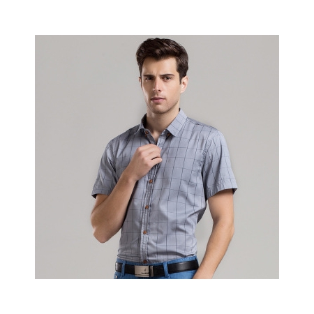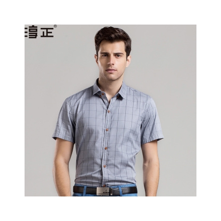 淳正(honupr)2015夏装短袖衬衫男士休闲修身格子衬衣131139 灰色 XL/41