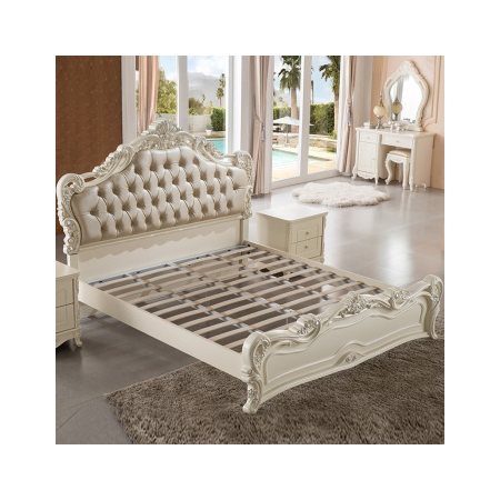 贝黎诗 欧式双人床1.8米 法式田园公主床 实木高箱床1.5米 卧室家具 8802床真皮雕花床尾框架