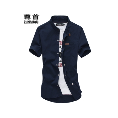 尊首 2015夏款男装 男士韩版修身短袖衬衫 商务休闲衬衣男 免烫衬衫男潮 CS013藏青 L
