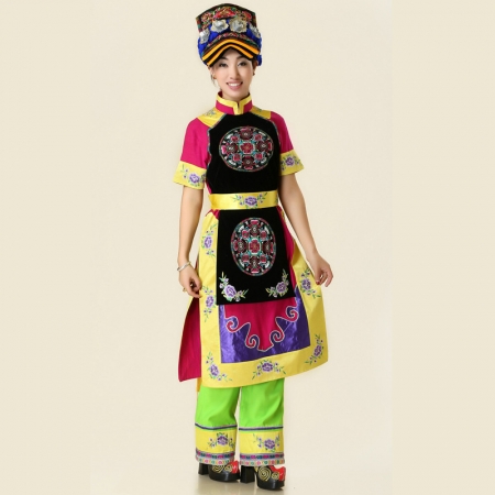 产品包含:羌族 头饰+上衣+背心+裤子+围腰