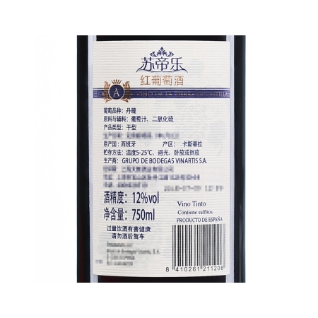 西班牙进口红酒 苏帝乐干红葡萄酒 750ml*6瓶