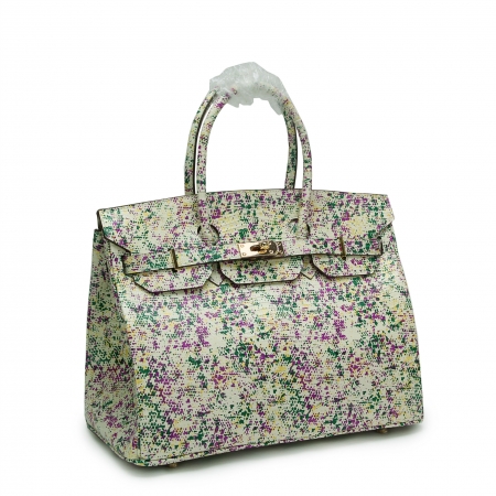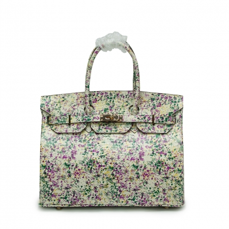 欧美时尚大牌明星同款铂金包经典爆款蜥蜴纹碎花头层牛皮真皮女包