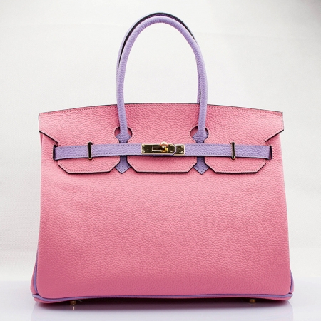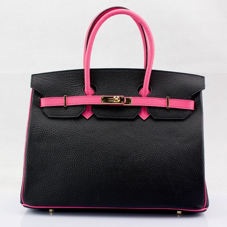 2014欧美大牌 35cm撞色荔枝纹铂金包 真皮女包头层牛皮原版五金